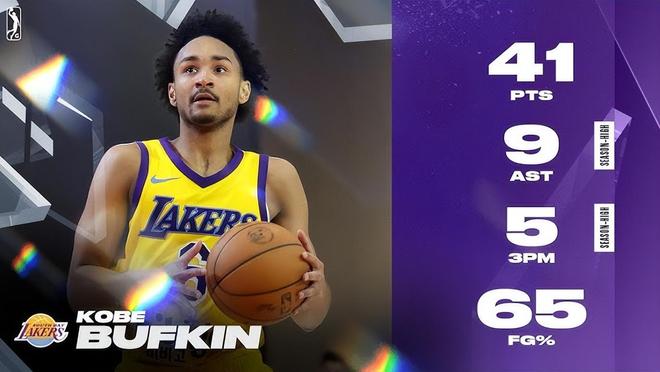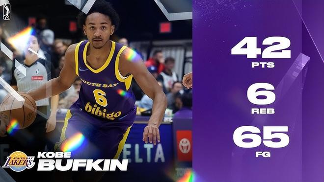 不過本賽季至今,巴夫金的健康狀況有所好轉,他為湖人下屬發展聯盟球隊南灣湖人出戰14場。這位身高1米93的後衛在G聯盟賽場打出瞭亮眼數據,場均出戰34.5分鐘,貢獻26.7分、4.9個籃板、4.3次助攻、1.3次搶斷和1.3次封蓋,投籃三項命中率更是達到精英級別的51.9%/40.9%/90.2%,達到180俱樂部標準。他在G聯賽打出過單場41分9助攻和42分6籃板這樣的表現。