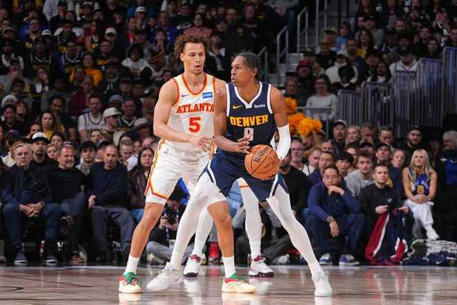 掘金過去兩場連續客場險勝76人與凱爾特人收獲2連勝,老鷹上一場主場117-100戰勝鵜鶘,本賽季首次交鋒掘金客場134-133險勝老鷹。本場掘金缺少約基奇、穆雷、瓊斯、卡約、瓦蘭,老鷹缺少麥科勒姆、裡薩謝、基斯珀特與波爾津吉斯。首節開局掘金8-3領先,老鷹連得5分追平,皮克特三分命中,老鷹回敬一波7-0攻勢反超比分。雙方隨後持續交替領先纏鬥至28-28,沃克上籃命中,首節結束掘金28-30落後老鷹。首節老鷹23中12,其中三分11中5,傑倫7分與沃克8分;掘金18中11超過6成準星,其中三分9中5,佈勞恩3中0得到0分。