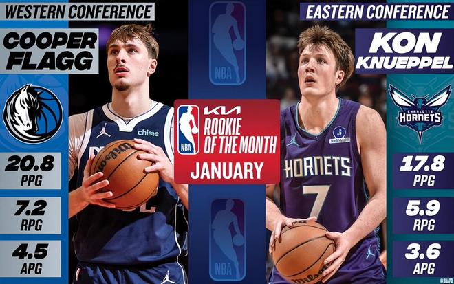 黃蜂的克努佩爾與獨行俠的弗拉格分別當選1月東西部月最佳新秀。